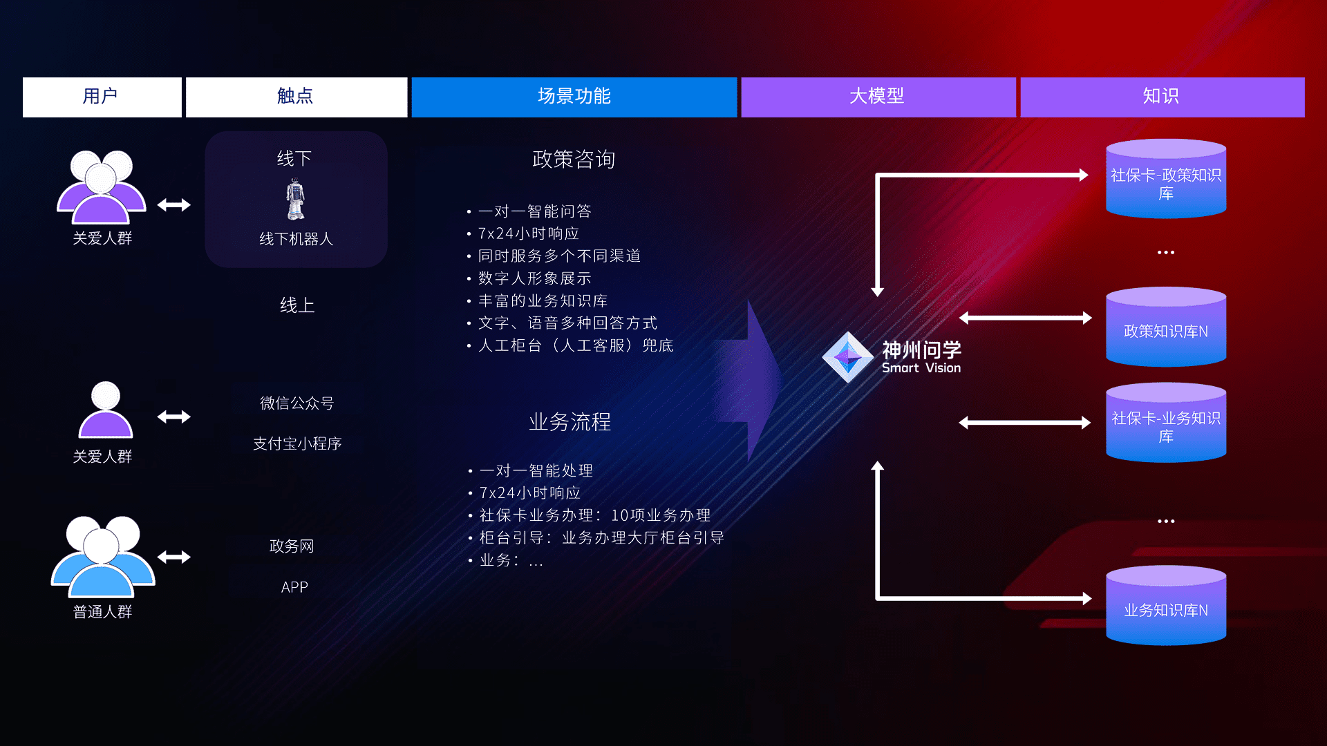 在服务大厅部署客服机器人,,,,在线上应用和小程序配置客服数字人,,,724小时为群众解答常规问题,,,,客服机器人无法处理的,,,转现场人工处理。。